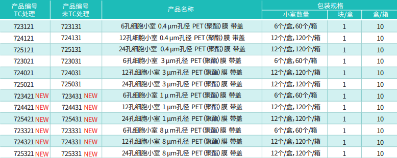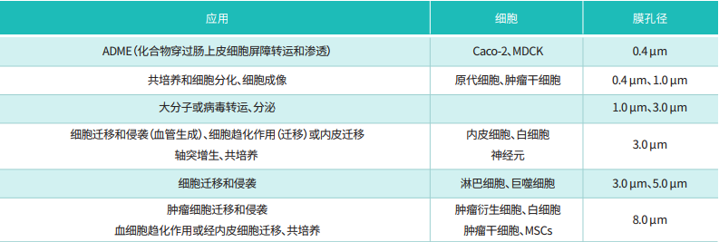 细胞小室在细胞实验中很常用,如:共培养实验、趋化实验、细胞迁移实验、细胞侵袭以及药物转运。其中,通透性支持物可以有效改善极性细胞的培养,因为这些支持物允许细胞从其基底面和顶面分泌和吸收分子,从而以更为自然的方式进行代谢,模拟体内环境以培养某些特殊的细胞系。