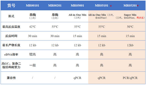 有更高逆转录反应温度:逆转录反应温度最高可达 55℃,获得 cDNA 产量更高,具有更完整的基因代表性,较低 RNase H 活性。