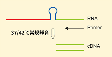 对于 37/ 42℃ 常规孵育来说,复杂的 RNA 模板二级结构未充分打开,从而阻碍了 cDNA 的合成。在 55℃ 高温孵育的条件下,复杂 RNA 模板二级结构在高温下会充分打开,因此 cDNA 的合成会继续。