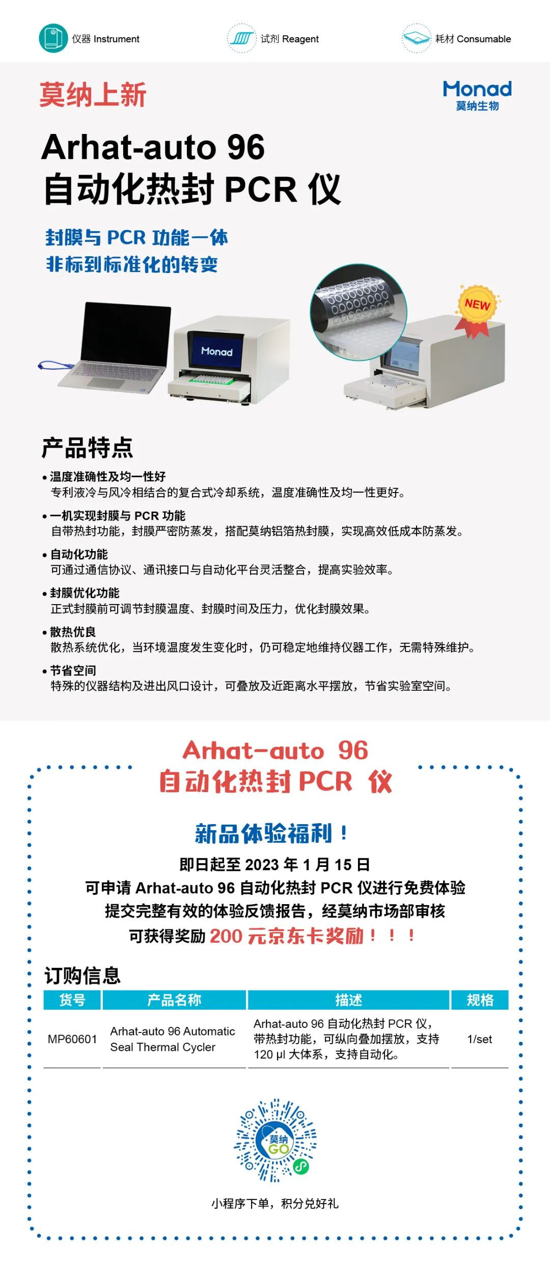 莫纳 Arhat 系列推出了全新一代自动化 PCR 仪Arhat-auto 96自动化热封 PCR 仪