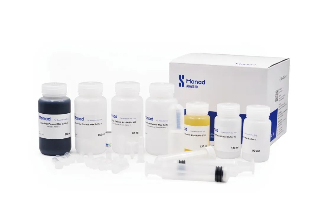 基于碱裂解法原理,搭配独特的硅基质膜吸附技术和特别设计的过滤器,可有效去除蛋白质、内毒素等杂质,所得质粒 DNA 模板纯度高、内毒素含量低。