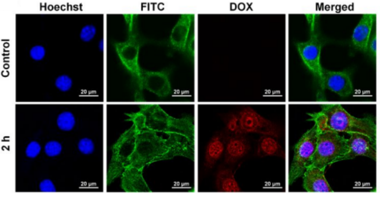 FITC是在荧光素的基础上通过化学反应增加(异)硫氰酸基团得到的,硫氰酸基团可以和生物活性物质例如蛋白质上的伯胺基团反应形成硫脲键,从而实现对生物活性物质的荧光标记。FITC能和各种抗体蛋白等物质结合,通过在荧光显微镜下观察或流式细胞仪分析可进行定性、定位或定量的检测。