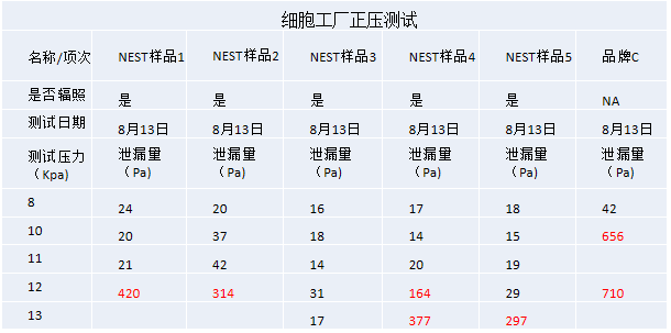 不难看出,NEST双大口十层细胞工厂的极限压力均大于10Kpa,