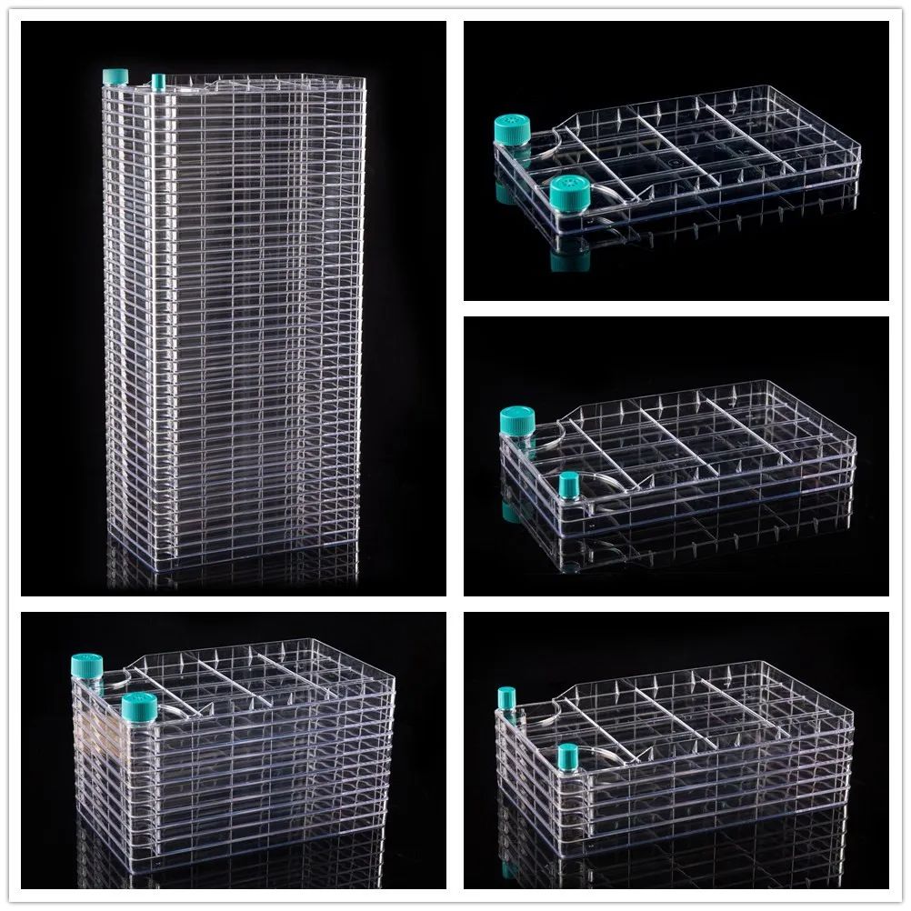 1.采用灌液口和主体一体注塑成型的工艺,使细胞工厂具有更好的密封性能及机械强度。