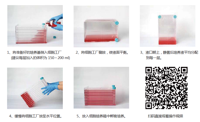 1. 将准备好的培养基倒入细胞工厂。(建议每层加入的体积为150-200mL)