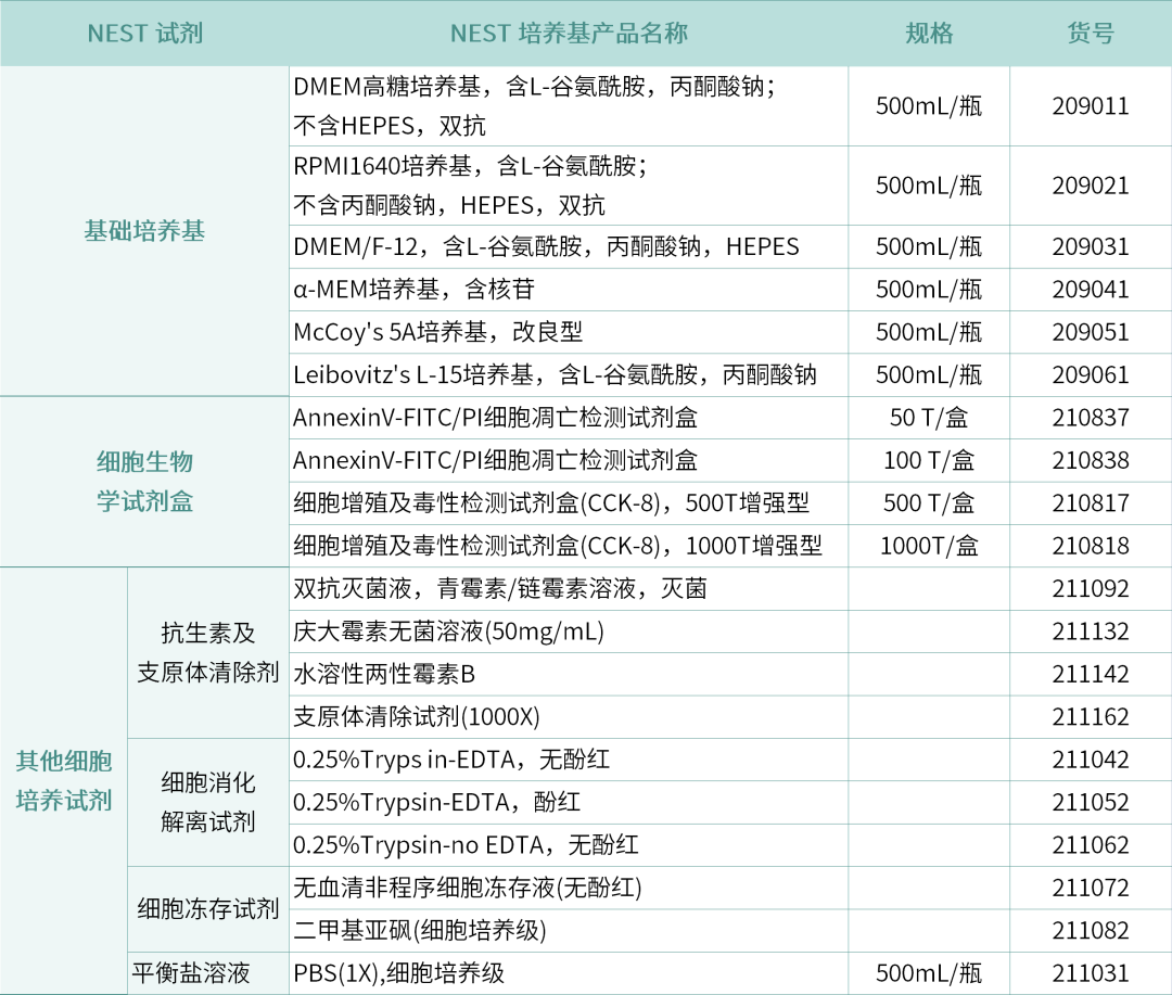 新品 | NEST细胞培养类试剂上市!打造优质细胞生长环境!