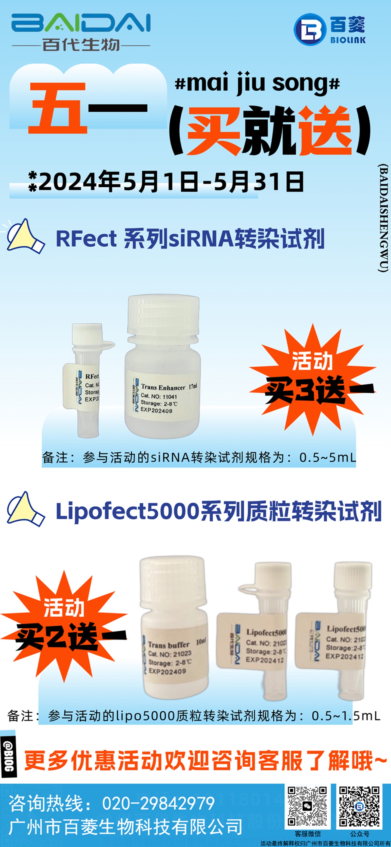 TEL:020-2984 2979E-mail:sales@gzbiolink.com百菱生物官网:www.gzbiolink.com关注我们,获取更多信息!