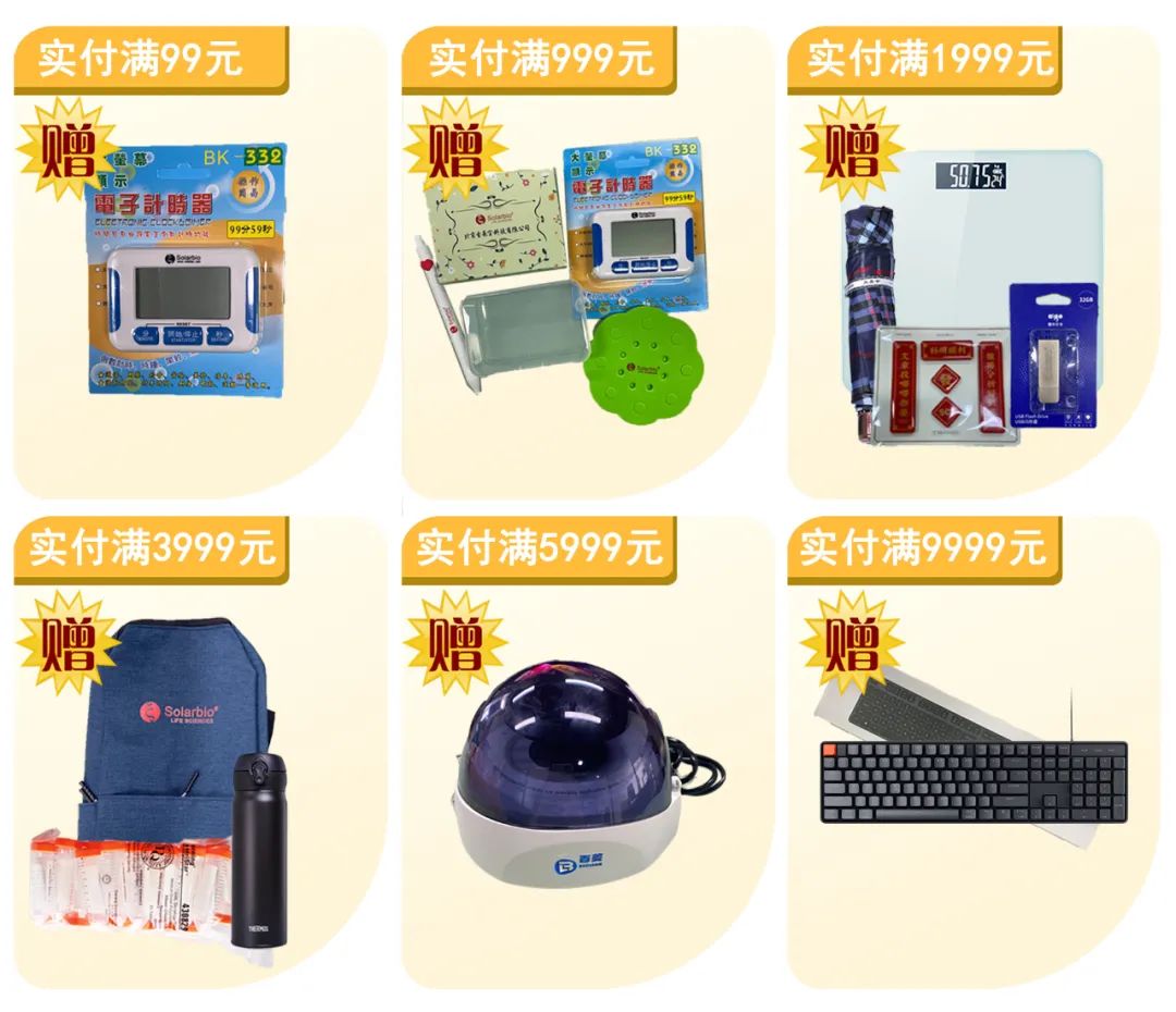 4.单笔订单满3999,赠送双肩包/保温杯/50ml离心管