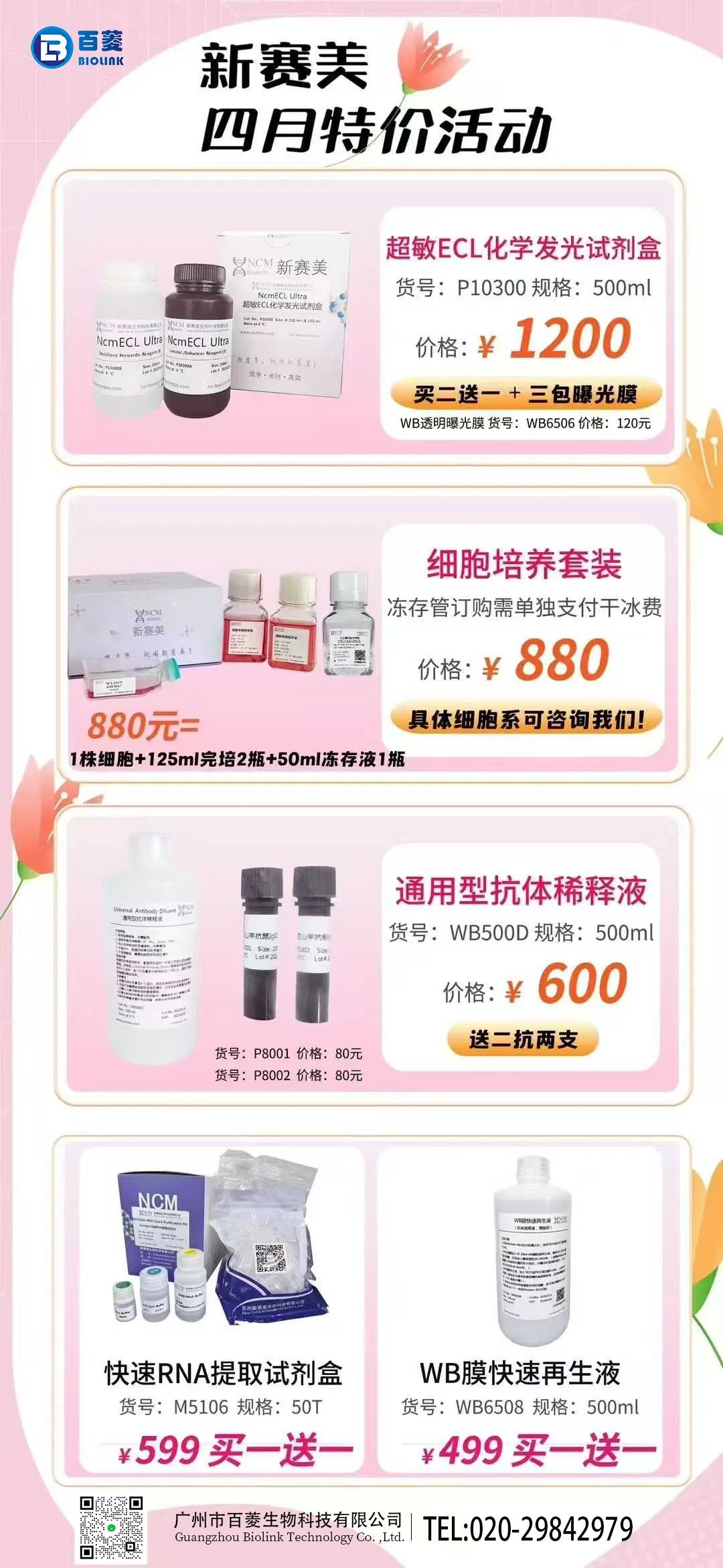 新赛美:“四月特价活动”、“超值细胞培养套餐”;