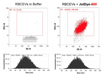 样本:JotDye-600标记的PC3 EVs+HEK-293T细胞,A549细胞系。