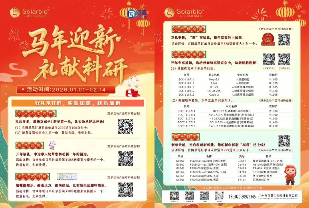 【最新促销活动】MCE、百代生物、菲恩生物、华美生物、洁特、科进、麦克林、莫纳、耐思nest、普诺赛、赛百慷、索莱宝、三鹰proteintech、新赛美NCM、雅酶、源叶、碧云天。生物实验试剂活动,最新、限时促销,火热进行中!