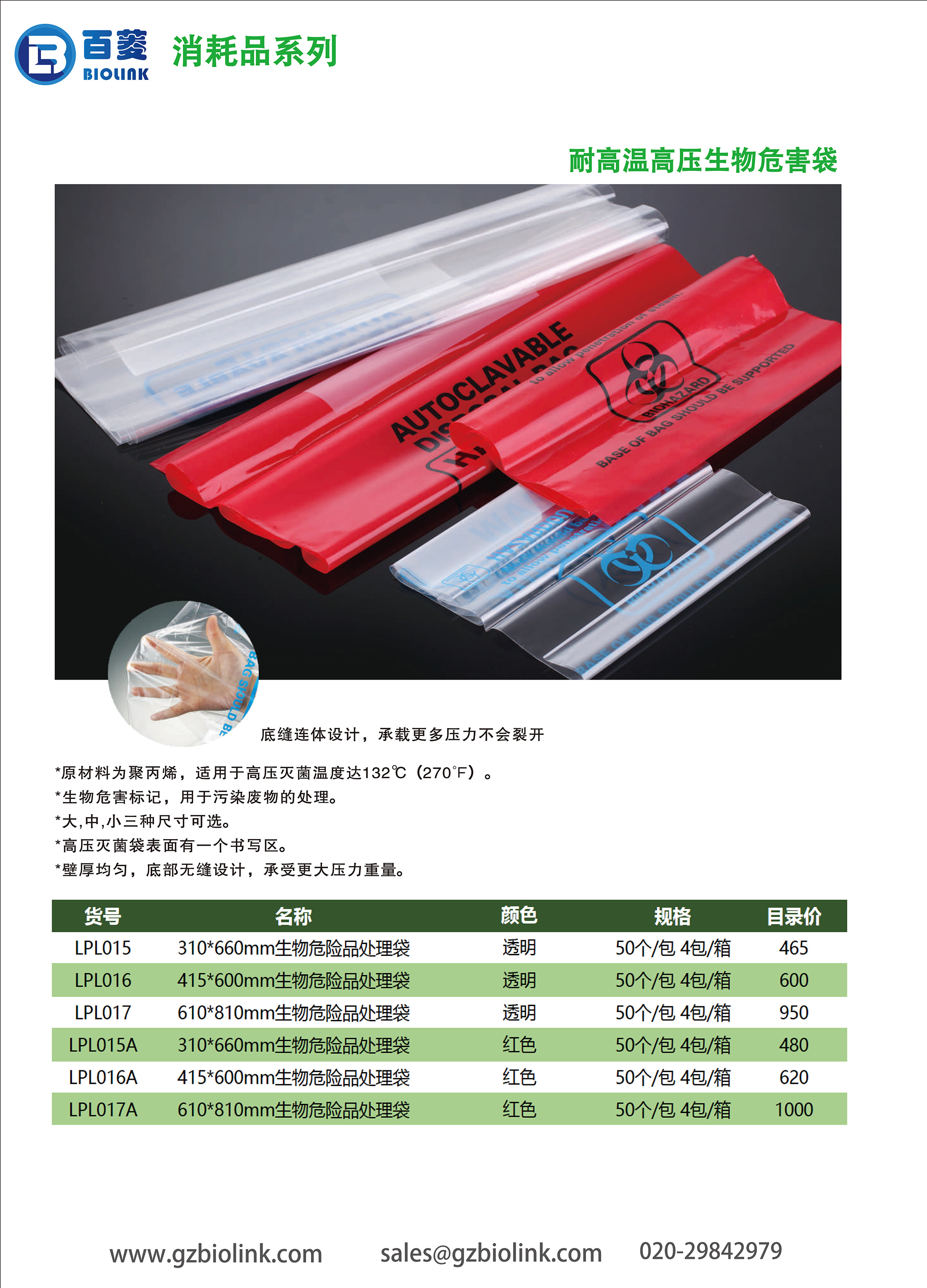 原材料为聚乙烯,适用于高压灭菌温度达132℃(270℉)。