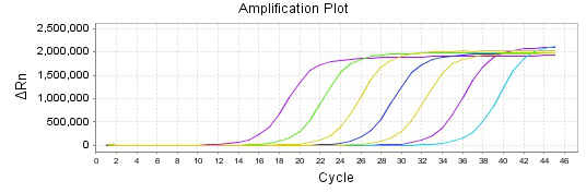 图.1 BIOGHSCSuper MultiProbeOne Step Kit检测甲型流感病毒,10倍梯度稀释曲线,检测灵敏度可达2copy/rxn.