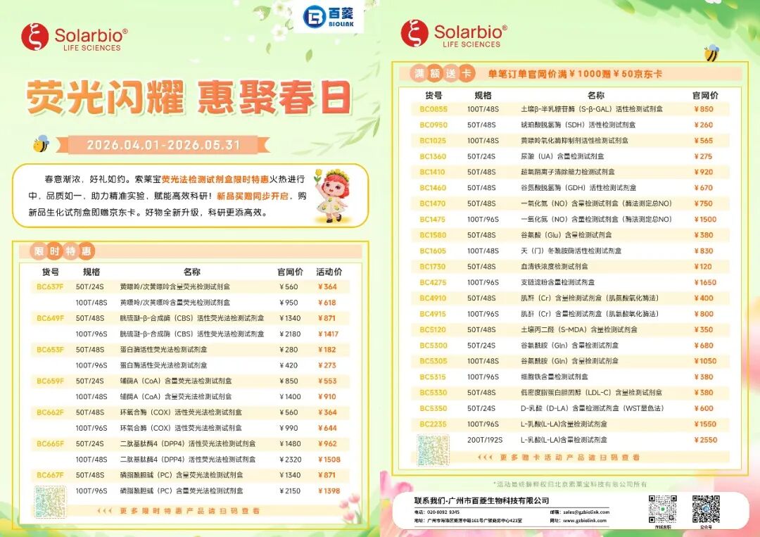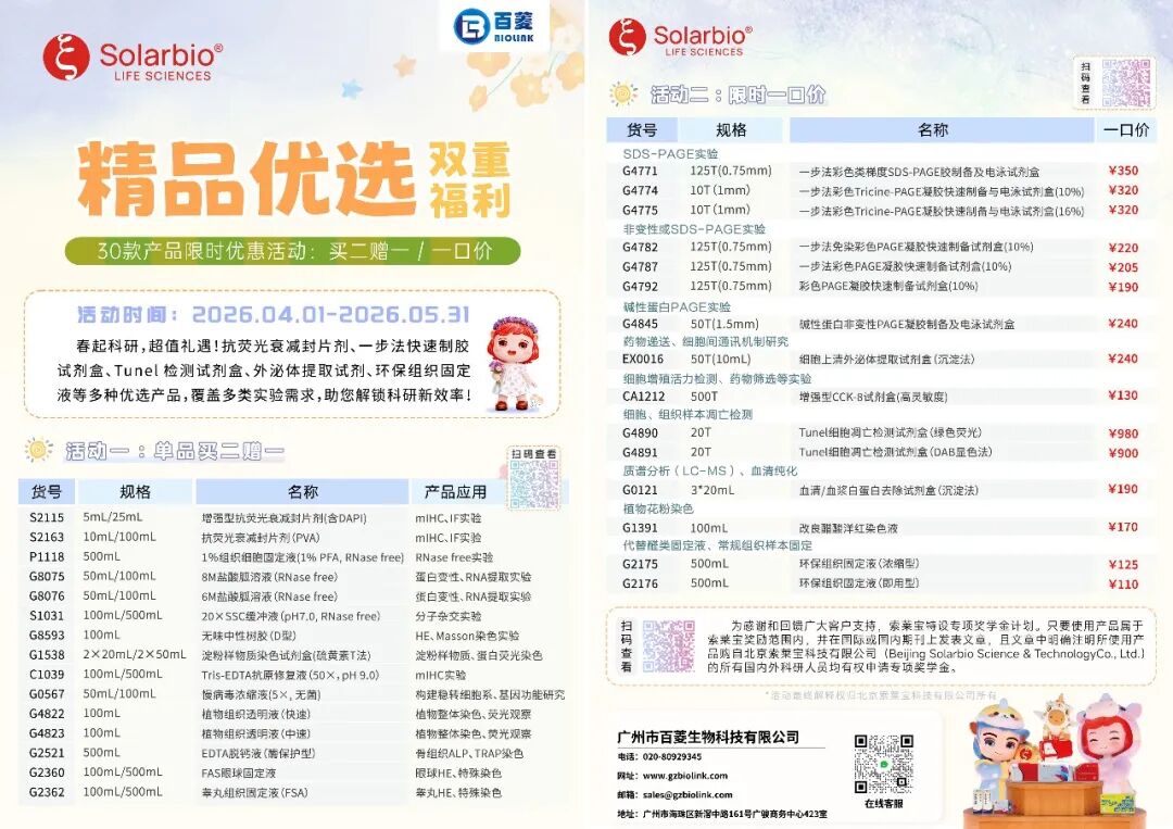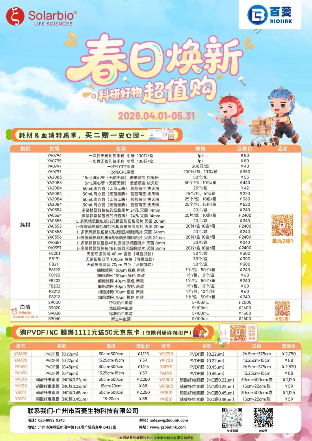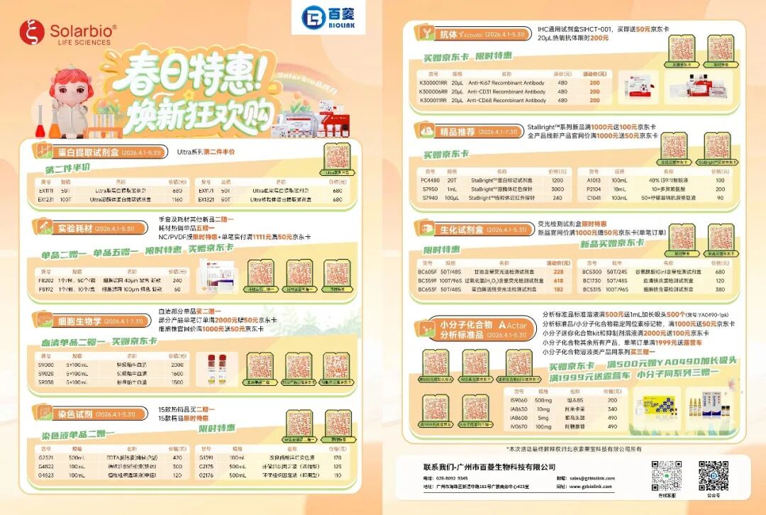 【最新促销活动】耐思nest、菲恩生物、源叶、碧云天、索莱宝、MCE、百代生物、华美生物、洁特、科进、麦克林、莫纳、普诺赛、赛百慷、三鹰/proteintech、新赛美NCM、雅酶、。生物实验试剂活动,最新、限时促销,火热进行中!