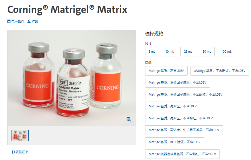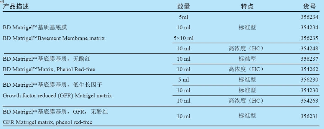 低生长因子(GFR)的Matrigel适用于对基质成分要求严格的实验,如细胞信号通路和细胞因子的研究等