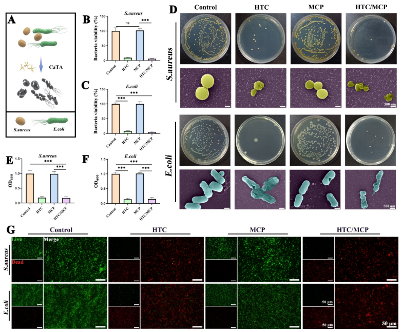 图6 HTC/MCP水凝胶具有良好的体外抗菌性能