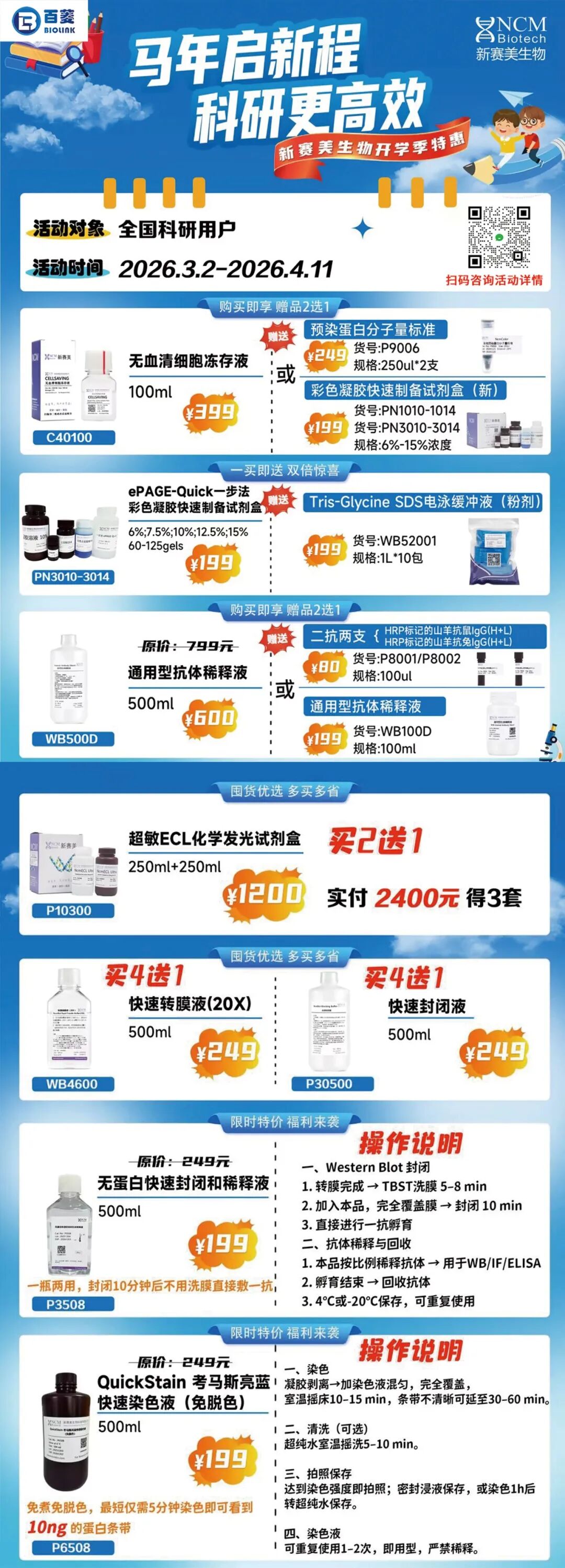 开学季,试剂耗材优惠活动,索莱宝、菲恩生物、耐思、普诺赛、abcam、雅酶、proteintech、新赛美生物、洁特生物限时促销,超值折扣。
